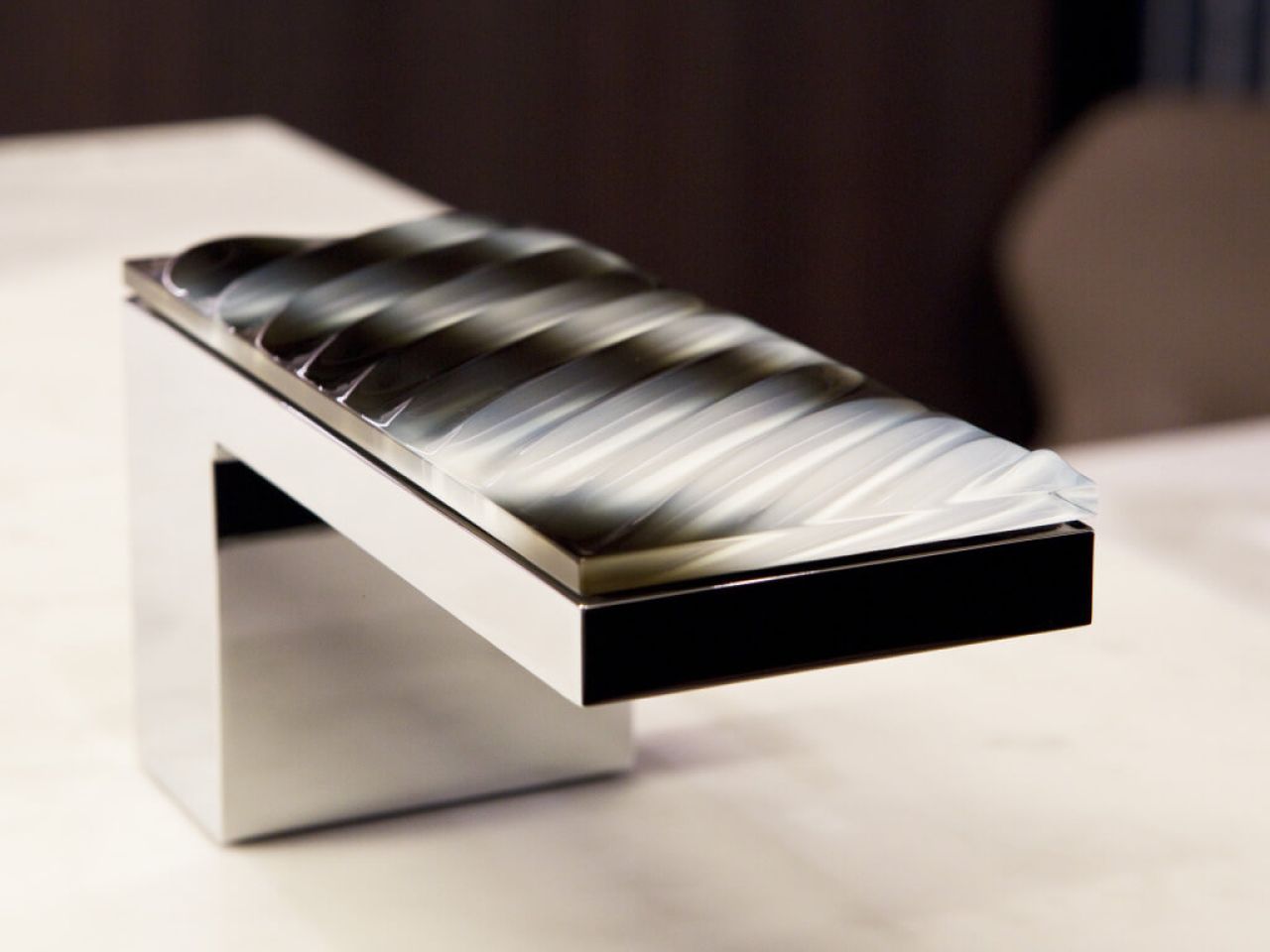 We were then approached to bring the winning design to life. The brief was to create a design of radiating soundwaves passing through liquid and have it look like it was frozen in ceramic or glass.