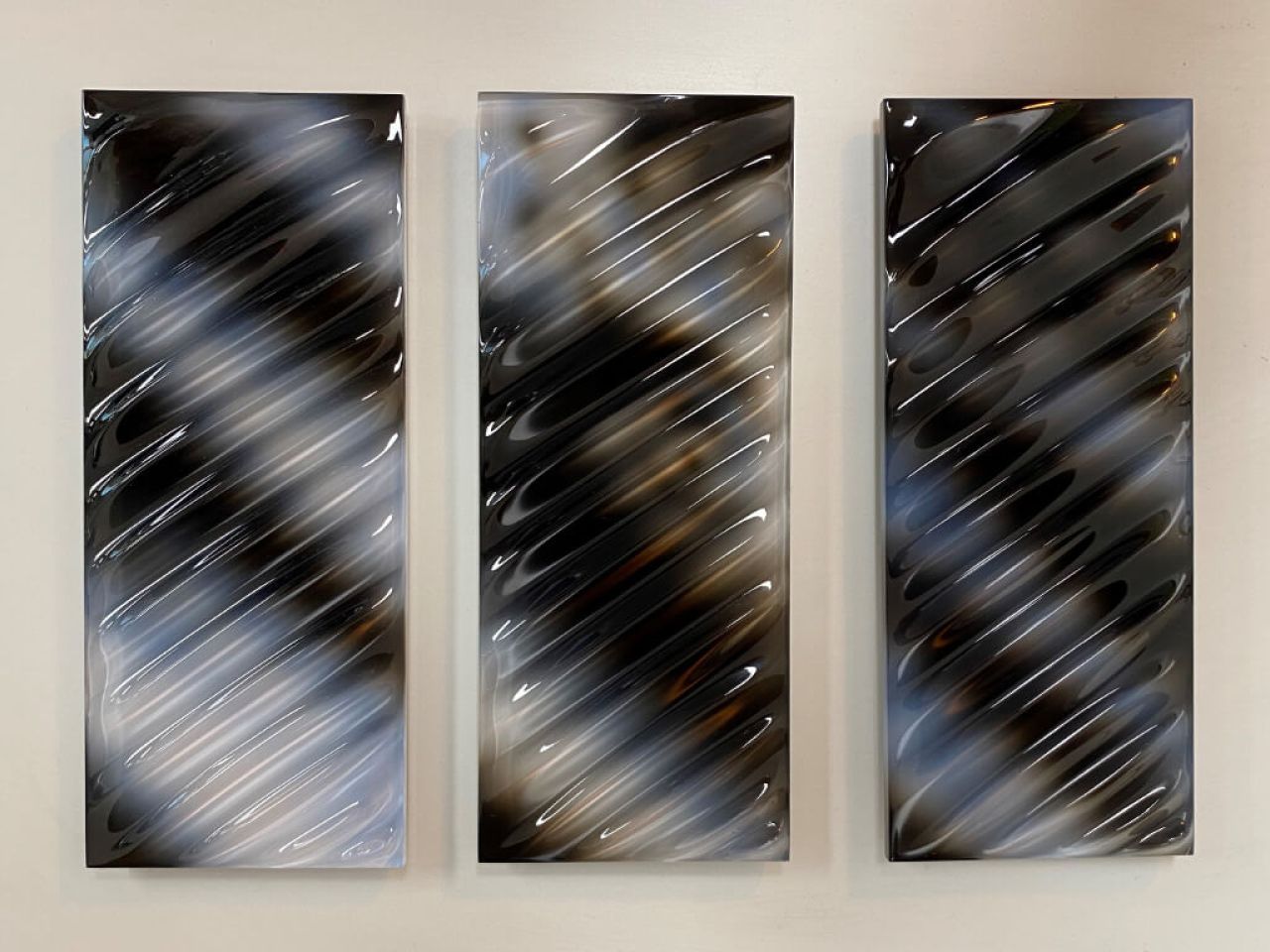 The parts were then expertly airbrushed with thinned paints to create the oil on water finish that was semi-transparent, allowing light to pass through the surface creating a true liquid like finish frozen in time